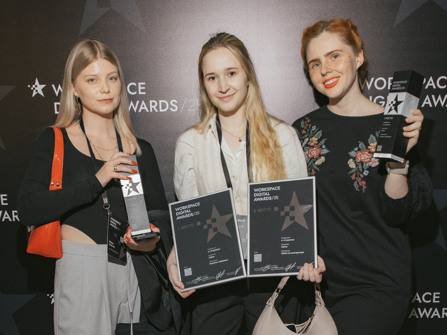 Церемония награждения победителей состоялась 23 апреля 2025 года в Москве, на которую пришли наш лид-дизайнер Настя Косаткина, веб-дизайнер Полина Кондратьева и ко-фаундер и арт-директор Маша Ищенко. Они также поделились своими впечатлениями.