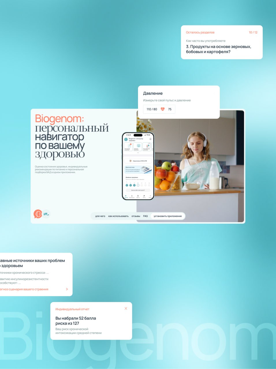 Быстро получилось сделать проект для Biogenom — приложения для анализа состояния здоровья и выдачи рекомендаций. За четыре(!) дня все отрисовали, уже верстаем и совсем скоро запустим. Нас попросили сделать все быстро, мы сделали быстро. За деньги да (с)