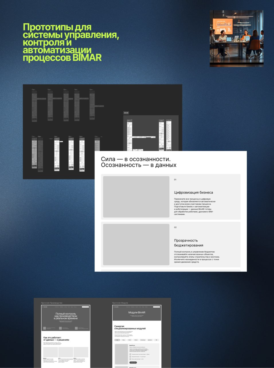 Еще работаем над продвижением системы управления, контроля и автоматизации процессов Bimar. Она помогает оптимизировать работу на производствах, складах и в сложных нишах. Мы сейчас на этапе работы с текстами/ смыслами. И скоро будем стартовать дизайн.
