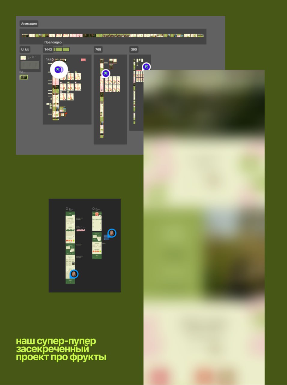 Один из наших засекреченных проектов про фрукты уже на стадии реализации главной страницы, плюс работаем пока что над внутренними страницами. Там все двигается, но пока мы поближе показать не можем — проект под НДА.