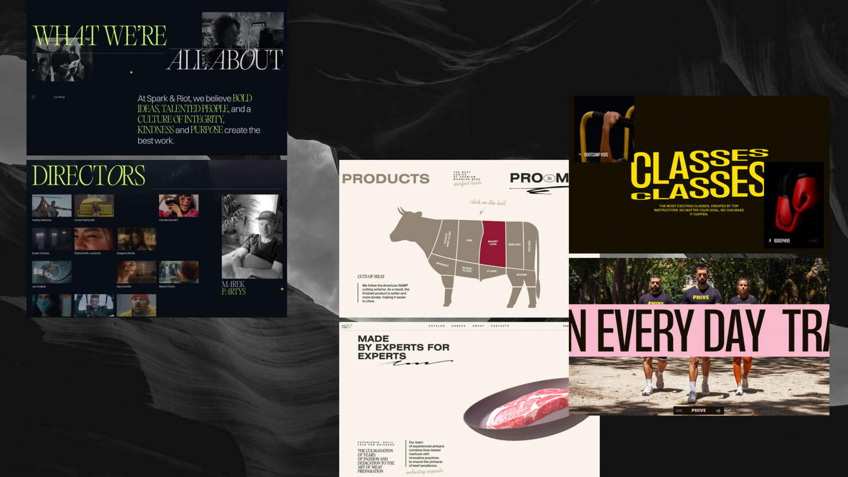 promeat.chipsa.design — 3D-поскрольная анимация ведет пользователя по смысловым блокам, горизонтальные скроллы и погружающие фотографии усиливают эффект.